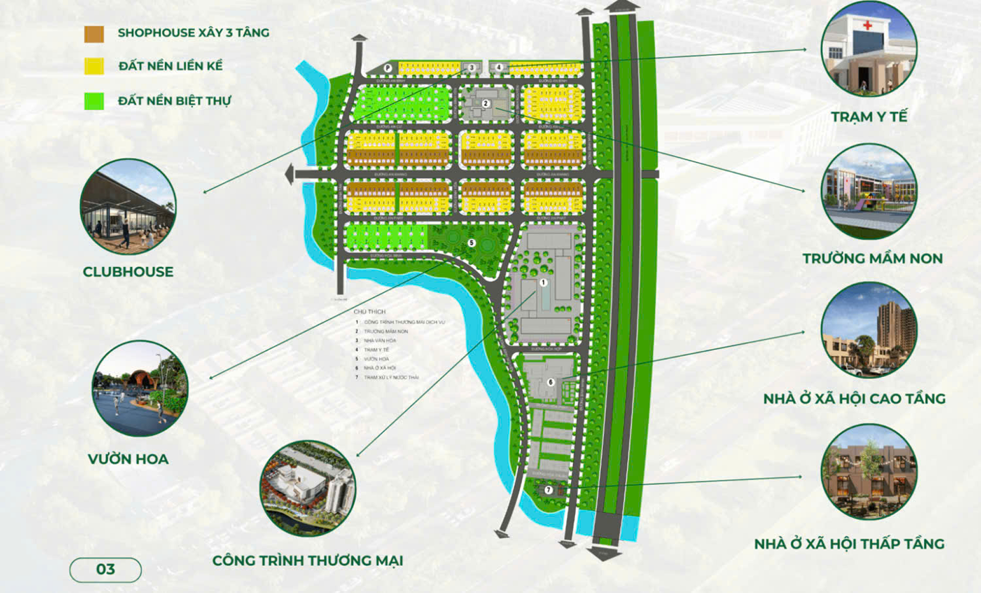 - Số lượng sản phẩm: 57 căn shophouse; 04 căn Villa; 39 căn Mini hotel; 146 lô đất nền biệt thự, liền kề